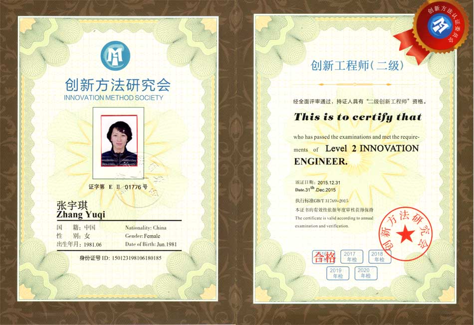 張宇琪創(chuàng)新二級(jí)證書(shū)