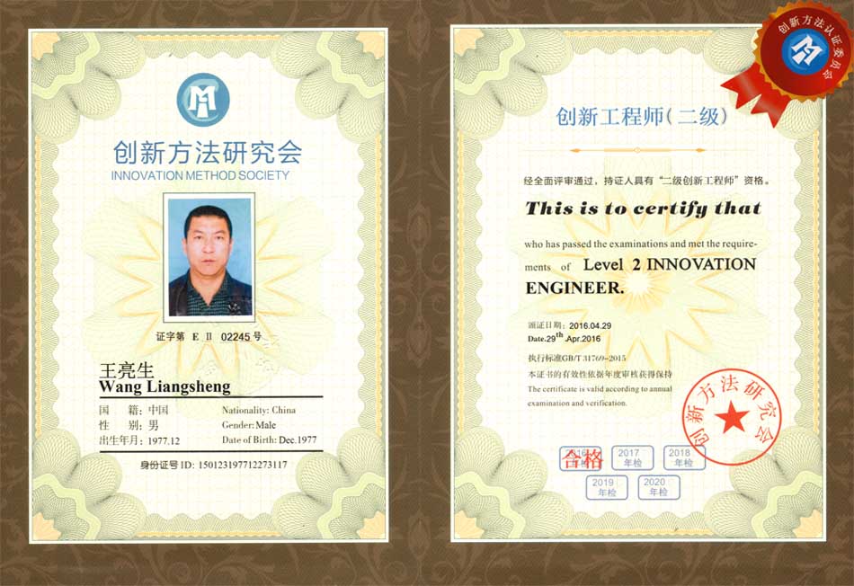 王亮生創(chuàng)新二級證書